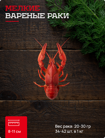 1 категория мелкие варёные раки 34-42 шт. в кг